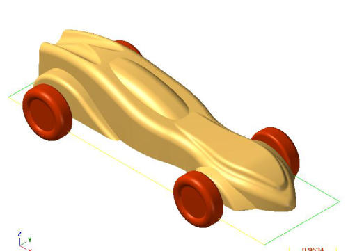 The Cub Scouts started out with their own hand-drawn sketches of their car concepts on paper. Then they were thrilled to take part in Solid Modeling the designs in MasterCam. They generated the NC programs, locked and loaded the wood blocks into the CNC, homed the tools and ran the programs! (Under supervision!)Then they hand-sanded, painted, decorated and raced the cars. Here we can see a few of the rendered Solid Models.